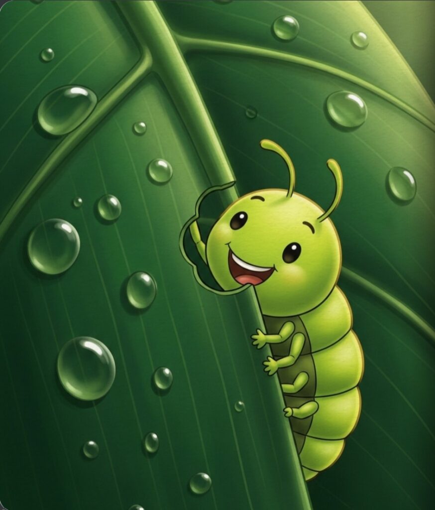 This is Lolo. Lolo was a very little, bright green caterpillar. Lolo loved to munch, munch, munch on big, juicy leaves.