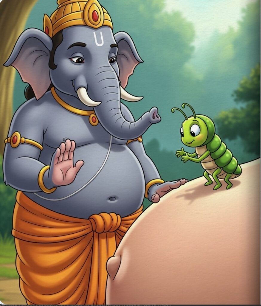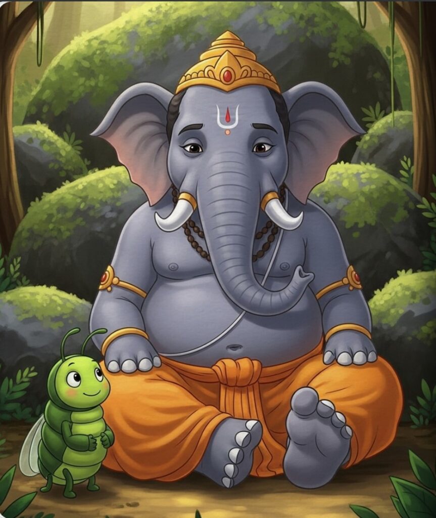 This kind friend was Lord Ganesh, the one with the big elephant head. Lord Ganesh looked warm and welcoming, holding a delicious sweet.