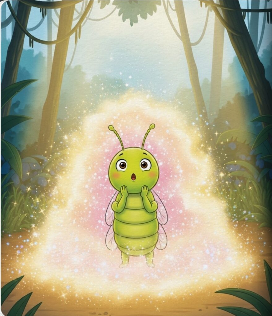 Suddenly, a wonderful tiny sparkle glowed all around Lolo! It was warm, bright magic that felt like a soft, sweet hug.