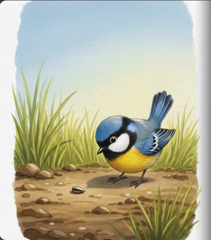 Pip the bird found a tiny, round seed. “What a perfect seed!” he chirped. He dropped it gently on the soft, brown earth and flew away.