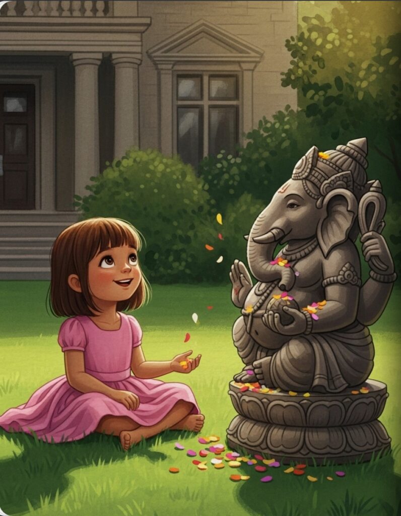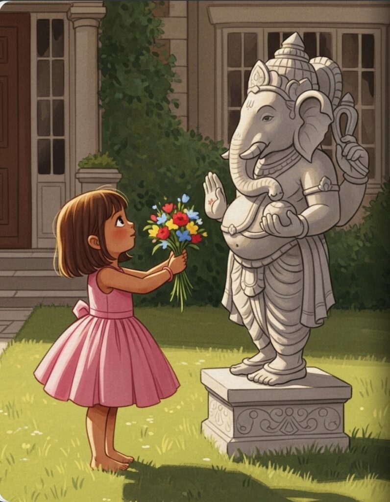 “Hello, Ganesh!” she said to the kind elephant statue. “I have a present for you.”