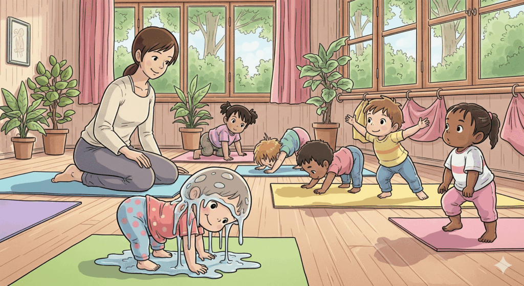 This program is designed to be a playful and collaborative experience between a teacher/caregiver/parent and a toddler, aligning with Lev Vygotsky’s principles of a “More Knowledgeable Other” scaffolding a child’s development. Yoga, with its fluid, spiraling movements, is an ideal modality for fostering the “Zone of Proprioceptive Development” by encouraging a child to explore their body’s movement in a safe, supported way.