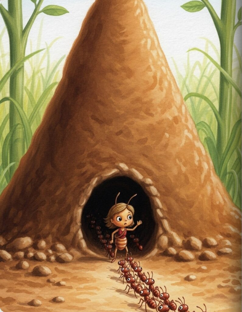 One day, Silas found a perfect new home under the roots of a giant tree. “This is a home for the best!” he said. But right next door was a busy, busy anthill.
