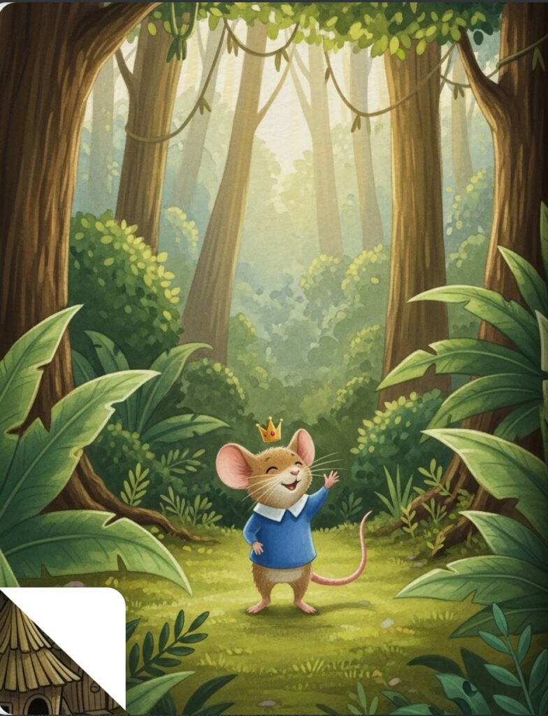 But down on the ground, under the big green leaves, lived a family of tiny mice. Their king was a brave little mouse named Mooshika. Their little homes were right in the elephants’ path!